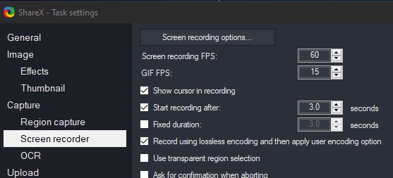 Set maybe F2 (or some unused key) for hotkey to start/stop recording.